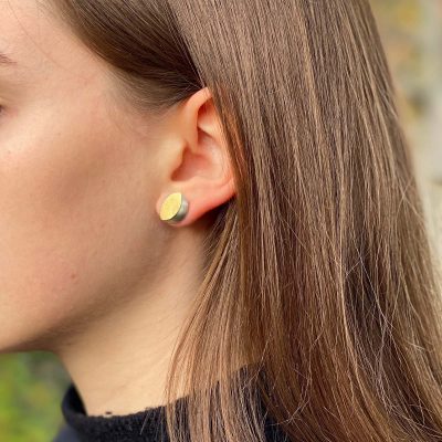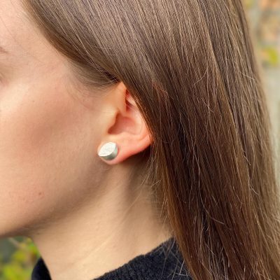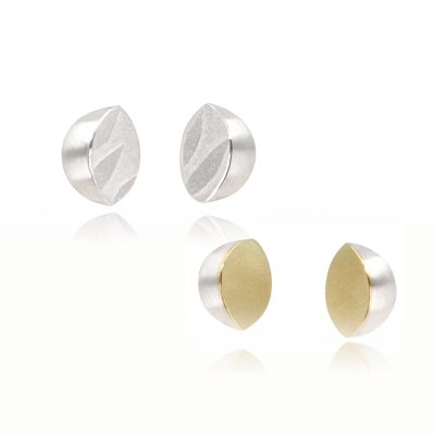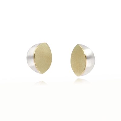 Hollow studs in silver and 18ct gold. Every stud is hand textured using watercolour paper so each pair is slightly different. A matching pendant is available to go with these studs. Dimensions: height 1.4cm x width 1.0cm