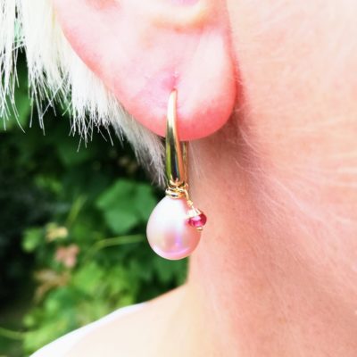 Gemstones: two pear shaped pink Freshwater Pearls & two 3mm round faceted round Ruby beads