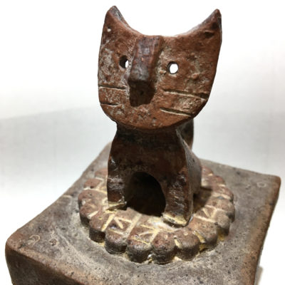 A Cat on a Box as a small lidded ceramic box: I hope the piece looks like an artefact that has or has had a significant but unfathomable use..