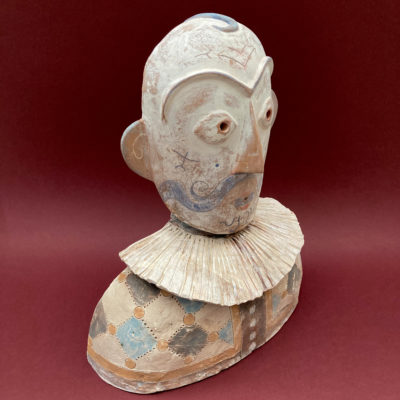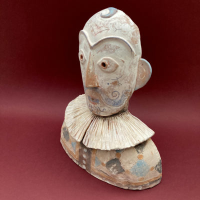 “I work with a variety of clays into which I often add other fragments of material. These ”inclusions” plus the use of oxides and multiple firings add to the alchemy and often give the clay a distressed or patinated surface.”