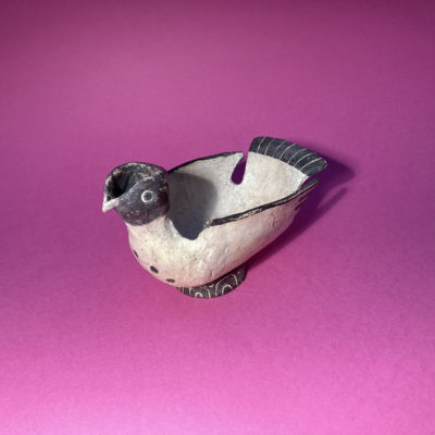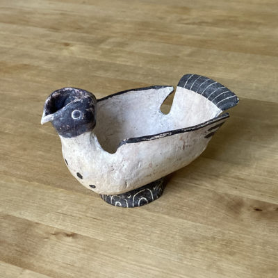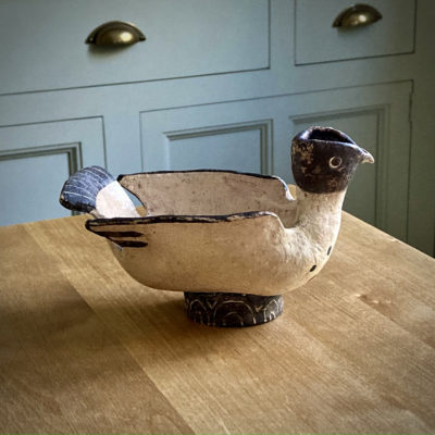 A Dove jug: made from a pale earthenware clay, decorated with oxides and finished with wax this piece has just a hint of Picasso meets ancient Rome about it.
