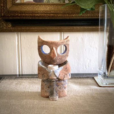 A love of whimsy, folk art, religious and tribal art and his background as an illustrator, all go into the mix.