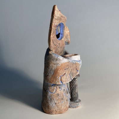 “I work with a variety of clays into which I often add other fragments of material. These ”inclusions” plus the use of oxides and multiple firings add to the alchemy and often give the clay a distressed or patinated surface.”