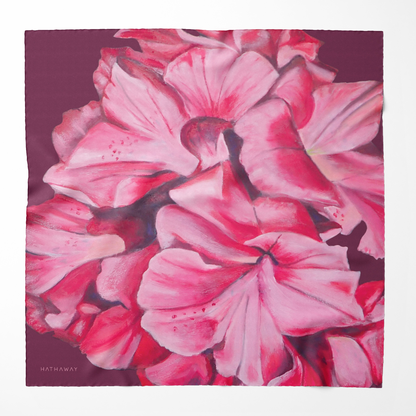 Scarves are delivered in a HATHAWAY hand-foiled, scarf-box and include an ‘art-card’ of the scarf design.