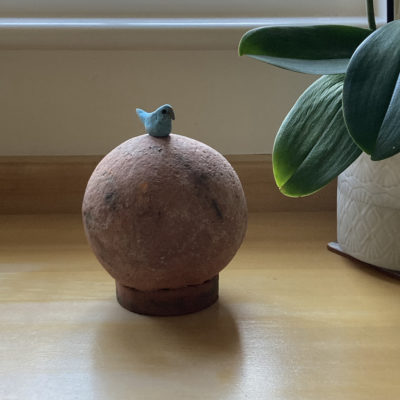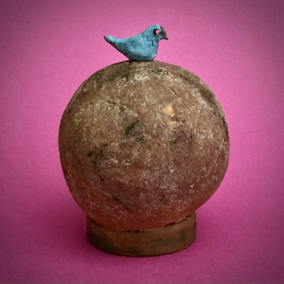“I work with a variety of clays into which I often add other fragments of material. These ”inclusions” plus the use of oxides and multiple firings add to the alchemy and often give the clay a distressed or patinated surface.”