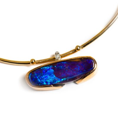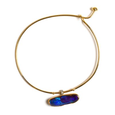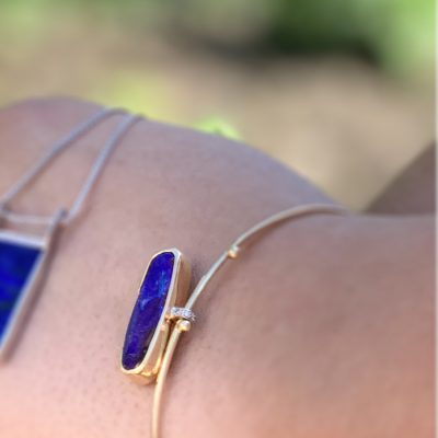 Lisa Marie has been working alongside opal miners for many years, The stone is completely natural and has not been treated in any way. The opal was mined in Queensland Australia. Lisa Marie has designed the bracelet so it can sit on the front of the wrist and is inhibited from swinging round to the back of the wrist. The bracelet is also made oval so it shouldn’t swing around the wrist.