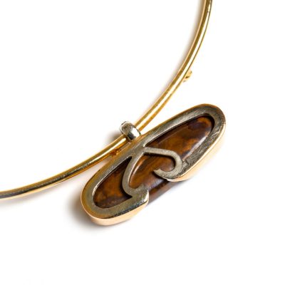The bracelet pendant has free movement however it is restricted from falling to the back of wrist due to the small 18ct yellow balls which allows the opal to sit comfortably in the centre of the wrist.