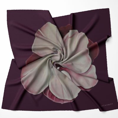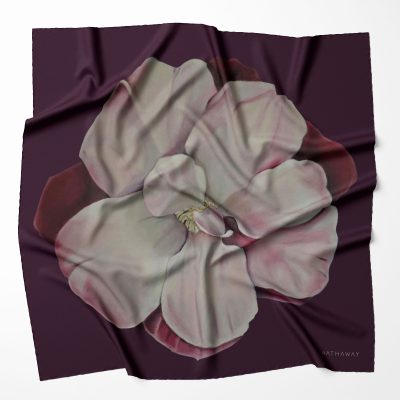 Designs created from Lyn Hathaway’s hand-painted botanical artworks. Scarf designed in London by Lyn’s daughter Sera Hathaway.