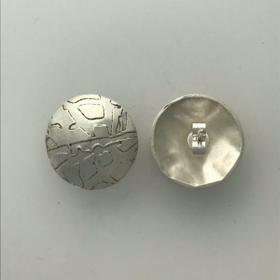 These are circular convex earrings with an etched leaf pattern. A simple post and butterfly are attached on the reverse side.