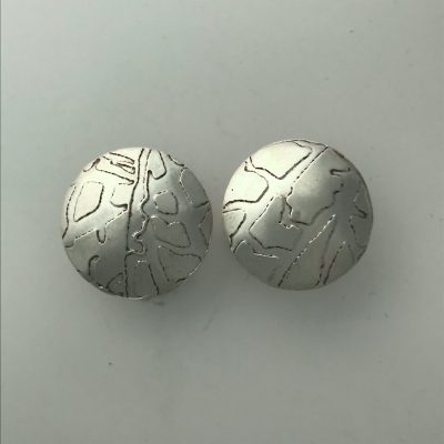 These are light and easily worn circular abstract earrings. The etched design is based on leaf patterns found in my garden.
