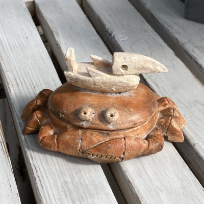 “I work with a variety of clays into which I often add other fragments of material. These ”inclusions” plus the use of oxides and multiple firings add to the alchemy and often give the clay a distressed or patinated surface.”