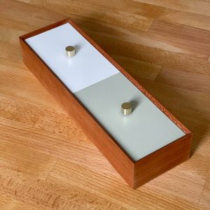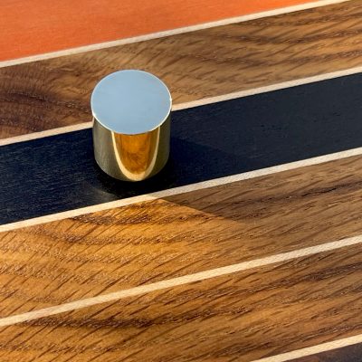 The pattern on the lid of this box is based on the highly polished mahogany decks of Italian motorboats where the planks of mahogany are separated with accent strips of contrasting light wood, normally maple or holly.