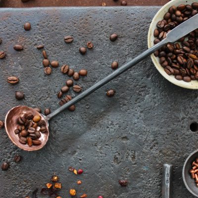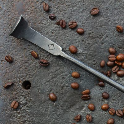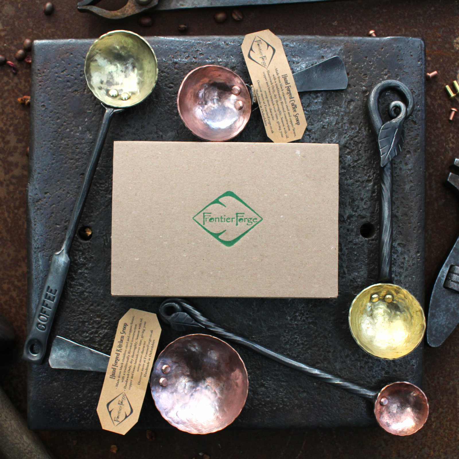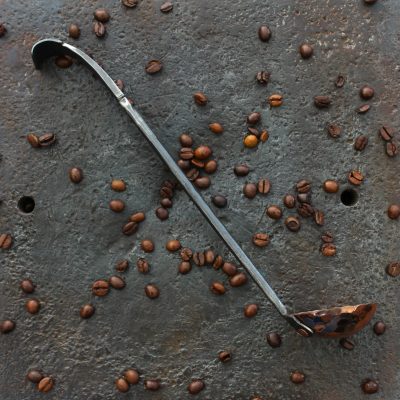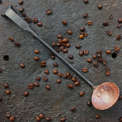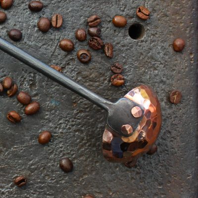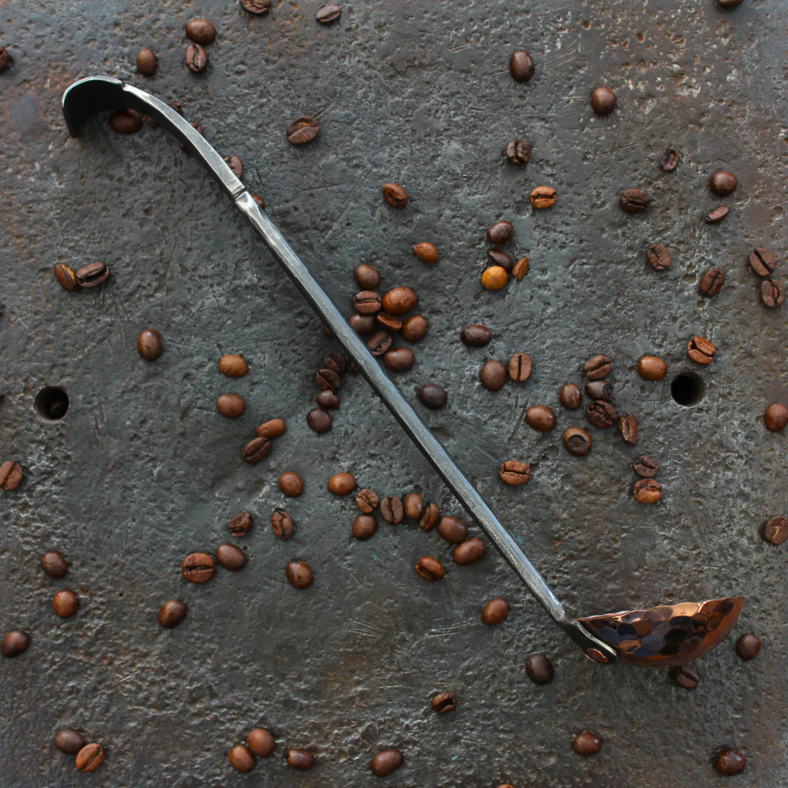 Hand forged from stainless steel and copper/brass our deluxe coffee Ladle is designed for those deep jars or as a display item for those coffee lovers! Features an elongated stem and flattened regal style handle with a turnover for hanging. Traditional rivets and hand plenished brass or copper makes our ladle a wonderfully unique piece of kitchenware. With a volume of 25ml its perfect for dry ingredients from coffee and loose tea to gravy and punch bowl drinks!