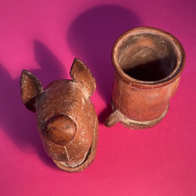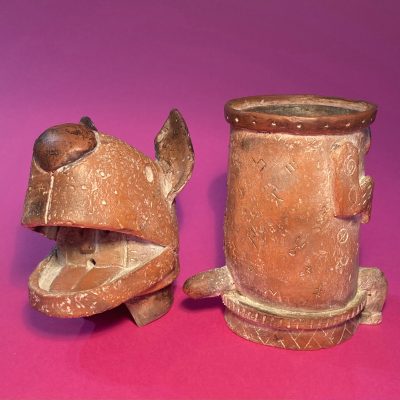 My inspiration for this strange and whimsical little chap was an 18th Century Staffordshire pottery tobacco jar and a strong dose of pareidolia !