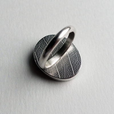 The back surface of the ring is imprinted with an additional leaf skeleton; a secret texture that is only seen by the owner when they take the ring off.