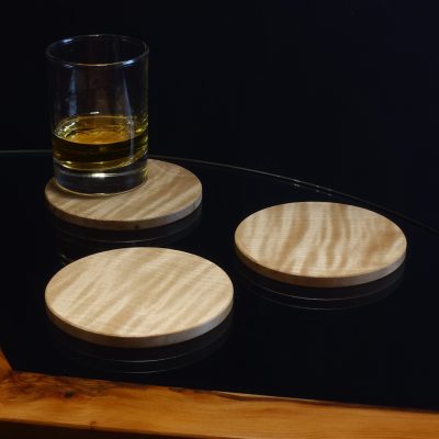 The first coasters I made were for a customer who had purchased a Yew table and wanted some coasters to go with it. Fortunately, I still had a few offcuts from making the table. As is so often the case, the small offcuts were more amazing than anything in the table but too irregular to use in anything large.