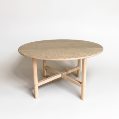 The Elli Coffee Table by Pintail Studio is a solid, handmade piece designed for contemporary interiors. Crafted from lightened oak, this coffee table features a rounded top and curved legs inspired by classic Ercol design.