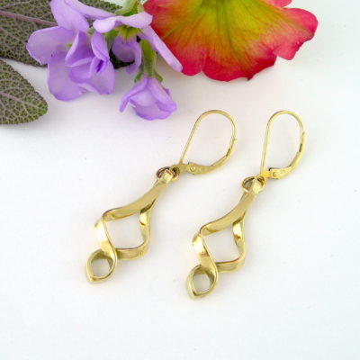 Inspired by waves lapping the shoreline, my ‘Eternal Wave’ earrings are hand-crafted in 9ct yellow gold and are a fusion of contemporary and Edwardian elegance. These elegant earrings match beautifully with my ‘Eternal Wave’ tanzanite and diamond pendant and have secure hinge-back fittings for extra security.