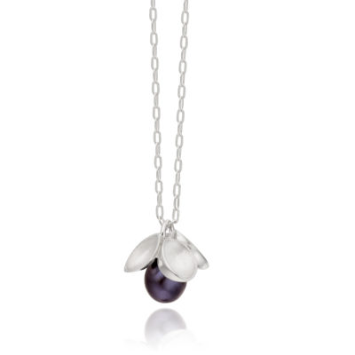 Single freshwater drop pearl pendant set within a silver shape, on sterling silver trace chain. Available in two chain lengths 41cm and 46cm.