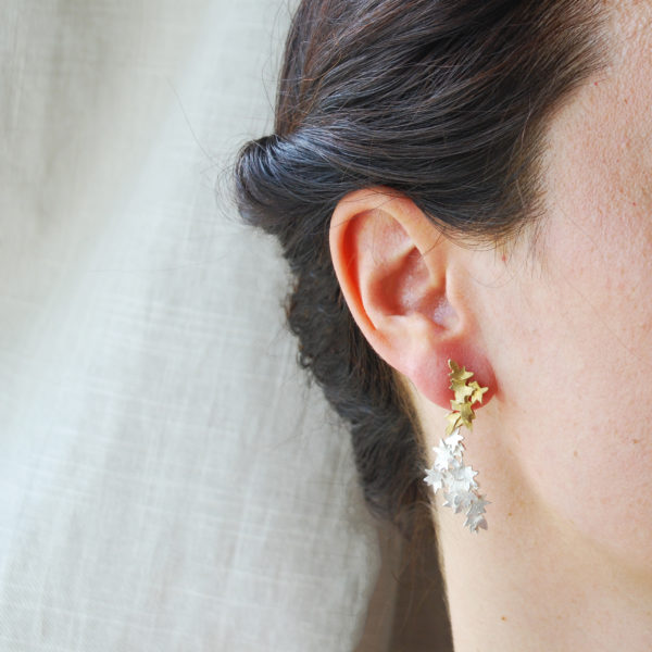 Made of two independent parts, the white Silver hanging element dangles when worn. These earrings are a stand out pair that will frame your face and are perfect for evening wear and special occasions.
