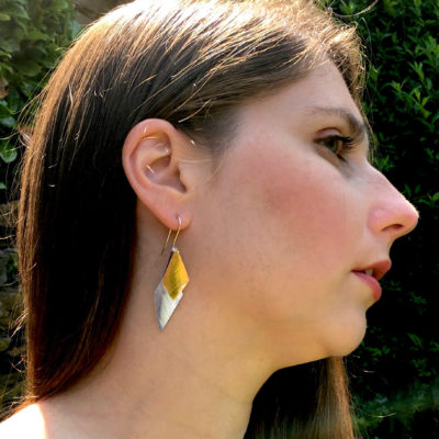 From Emma’s unique ‘Geo’ jewellery collection, inspired by the shimmering of light over water. Each hand-made piece captures the spirit of the ocean. Her eye-catching surfaces are hand-crafted in precious metals using specialist techniques and hand-made tools at her Devon workshop.