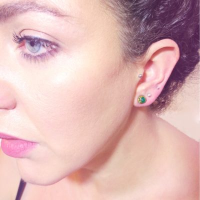 These gorgeous little studs are hand crafted in sterling silver, then set with 4mm faceted luminous green Agate checkerboard cut stones and gold plated.