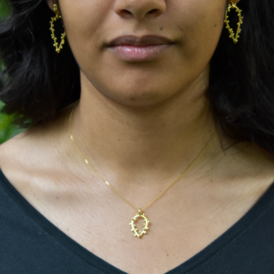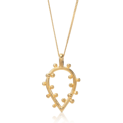 This teardrop shaped necklace is inspired by the textures and shapes found on sea urchin shells. Once the teardrop shape is constructed the silver balls are individually soldered on so that each necklace is unique.