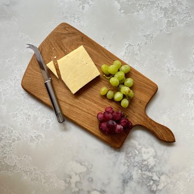 This handcrafted serving board combines style and practicality. The shaped handle fits comfortably in your hand, making it easy to transport. Perfect for preparing and presenting food, it adds a touch of sophistication to any table, elevating your entertaining experience with both beauty and function.