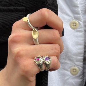 My most recent collection is inspired by the Honey Fungus (Armillaria mellea), I became excited and inspired to use the eye-catching beauty of this pathogenic fungus. This can have a very devastating effect in our UK gardens. However, the network of rhizomorphs that spread underground have an incredible texture and are extremely beautiful. I began to cast directly from these Honey Fungus rhizomorphs, resulting in my visually exciting, stunning and dynamic jewellery collection.