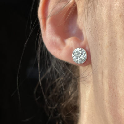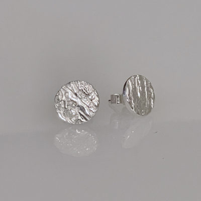 Honey Fungus Stud Earrings are cast in recycled silver from honey fungus, giving them a very organic texture. There are 3 sizes small (2mm), medium (10mm) and large (12mm). All are hallmarked with my maker’s mark with silver pin and butterfly stud fastenings. They are part of my honey fungus collection.