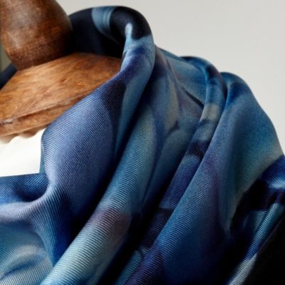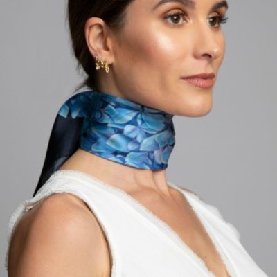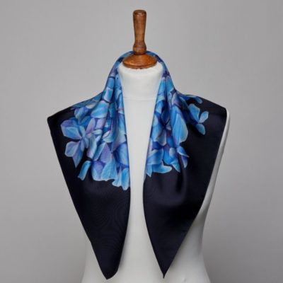 The Hydrangea masterpiece “oil on canvas” by Lyn Hathaway is photographed, and then Sera digitally prints it on the finest silk twill using Azo-free dyes. On the silk, the layers of oil paint create the most stunning dimensions. A one-of-kind piece to treasure and uplift.