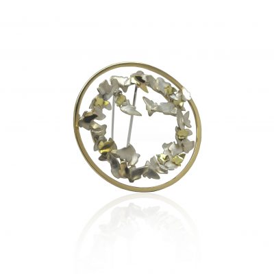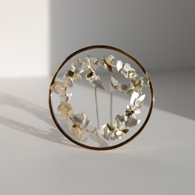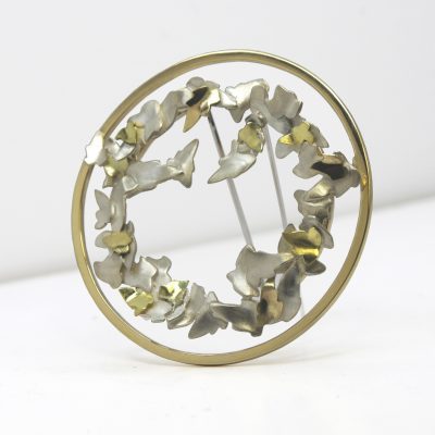 This one of a kind design is the hero piece from my Ivy collection. This stunning brooch grew organically as I arranged each individual Ivy leaf, building up the circlet layer by layer. The special secret about the piece is the rustling movement to the leaves, as the brooch has kinetic elements that move when touched.