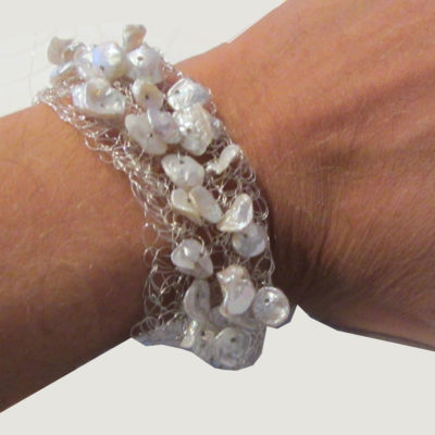 This cuff is crafted by hand in my London atelier, with recycled silver wire embellished and natural Japanese cultured Keshi pearls. Due to the nature of the fabrication and how unique these pearls are, each of the freeform cuff bracelets is one of a kind.
