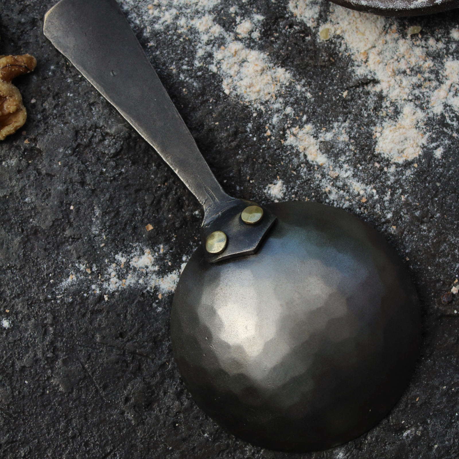 Our scoops may look simple but that’s the joy of an efficient functional design bringing modern style to a historic art form. Bringing blacksmithing into the modern day is something we strive for so all can hopefully appreciate the craft we love, it requires new design and ideas on ancient skills to achieve this. They may look simple but each scoop goes through 35 different processes to result in its streamline final form, they are a challenge of the eye, mind and heat all made by hand at a hammer and anvil.