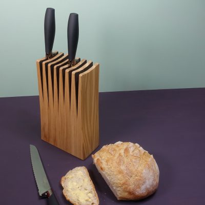 The distinctive “slashes” are a new concept for 2020. The starting point for the design was to take my already very sculptural slash-free knife blocks and see what I could do to make them even more attention grabbing, while maintaining their function as a knife block.