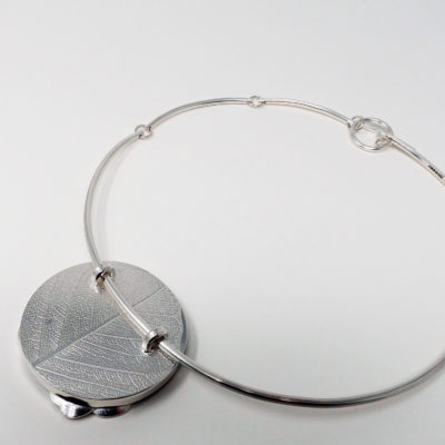 The back surface of the pendant is imprinted with an additional leaf skeleton; a secret texture that is only seen by the owner when they take the necklace off.