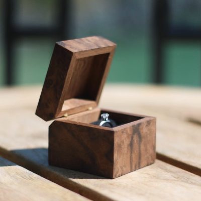 A beautiful ring needs a beautiful box for your loved one. This handcrafted burr walnut ring box is the perfect way to present the ring/rings for a special occasion.