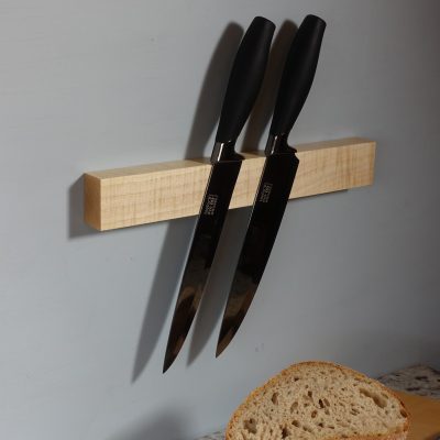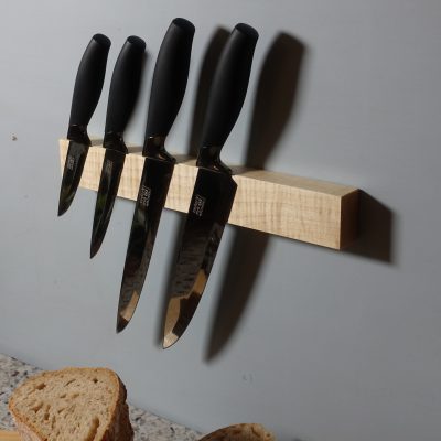 This beautiful knife rack in rippled sycamore is a great way to have a really special utility piece in a smaller kitchen.
