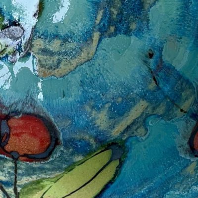 Wheelthrown bowl in a toasty stoneware clay and with rustic teal glaze and hand painted and drawn cherry and leaf motif on the interior and exterior. Great size for salads, fruit and of course cherries