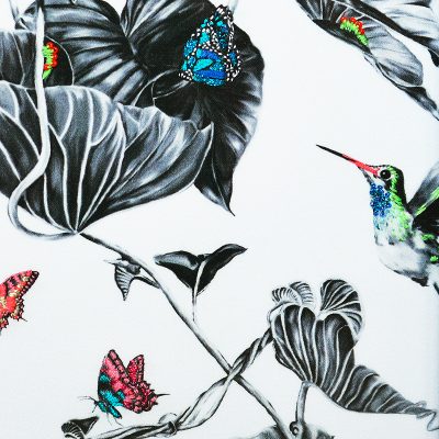 Inspired by many visits to Kew Gardens to take photographs and wander around the beautiful grounds. This cushion is from The Botanical Collection, Susannah’s first series of work. Her pencil drawings are printed onto fabric, which Susannah meticulously hand embroiders adding bright coloured detail. As in nature each piece of her hand embroidered work is unique. Each artwork is a one-off and will not be made again once it is sold unless it is commissioned.