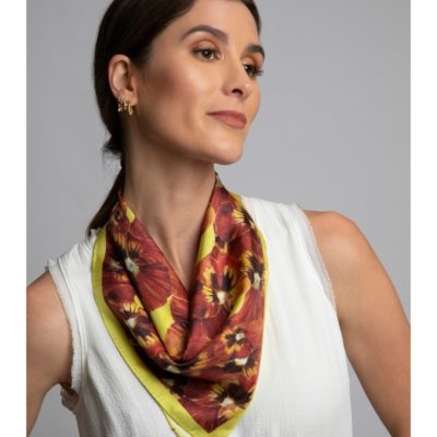 Made from 100% Silk Twill, the mini scarf goes nicely with higher necklines, casual jackets, and plain tops, and is an easy way to look elegant even when wearing jeans. You don’t have to wear it only around your neck – a small square scarf can look great in your hair, make a statement by wearing it around your wrist, or give a lift to your bag.
