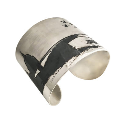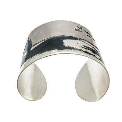 The cuff has some sections finished in satin while others are higly polished, The etched design is oxidised.