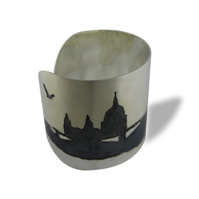 Handmade limited edition Silver cuff. The design is from a photo taken from London Southbank across the river Thames with St Paul Cathedral on the background.
