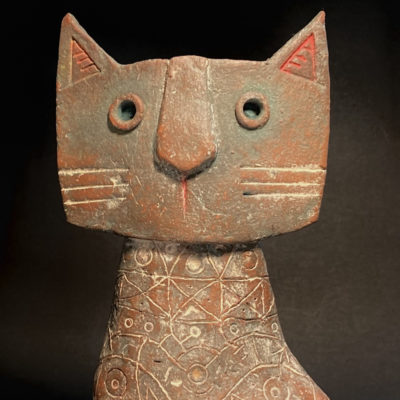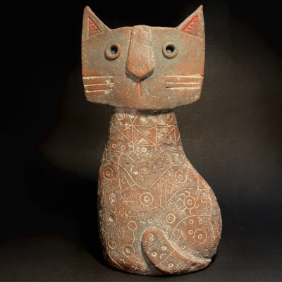 I’m not sure Paul Klee ever owned a cat so I decided to make him one. Made from mixed clays, decorated with oxides and incised with graphic motifs and patterns this totally unique piece has undergone multiple firings and is finished with a soft wax polish.