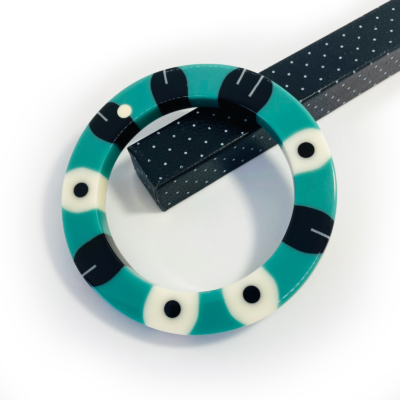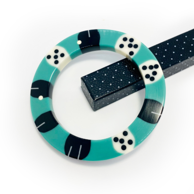 It is cast in Tiki’s signature colour palette of vibrant teal, black, and white resin. The 60s-inspired abstract pattern is created through multiple casting stages.
