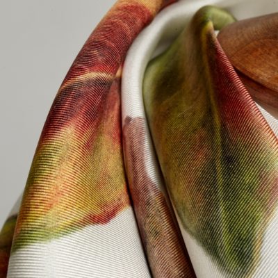 Lyn Hathaway’s hand-painted botanical artwork printed on a pure silk twill – ‘Art to Style’