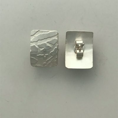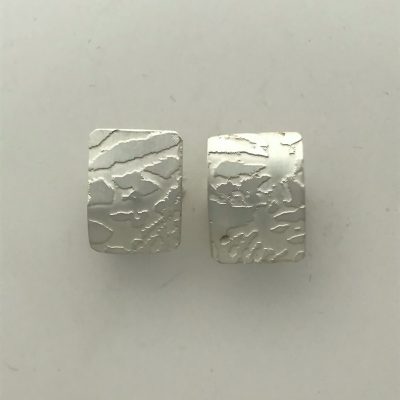 These rectangular etched earring are slightly curved and carry an abstract leaf pattern. They are made of fine silver which does not tarnish easily.
