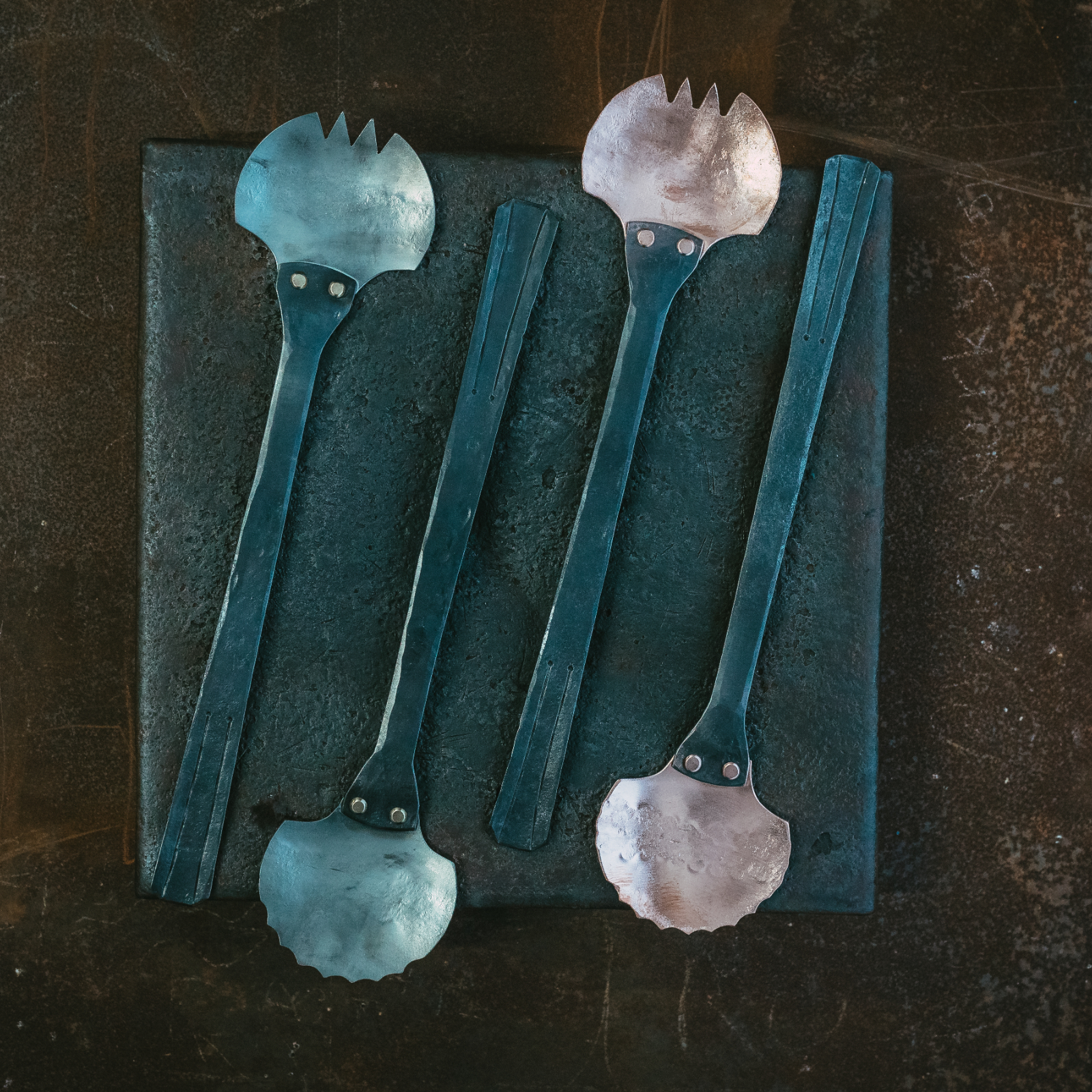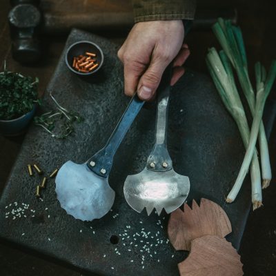 Carefully hand forged from stainless steel and copper these servers are built to last with a riveted construction for modern elegance and timeless function.