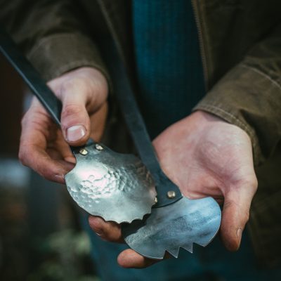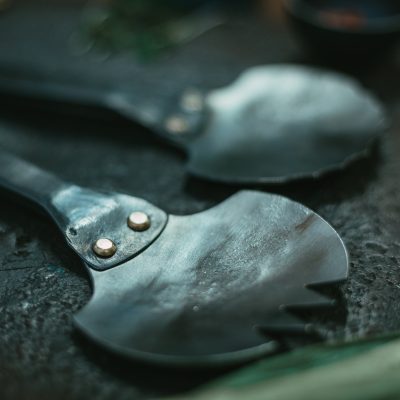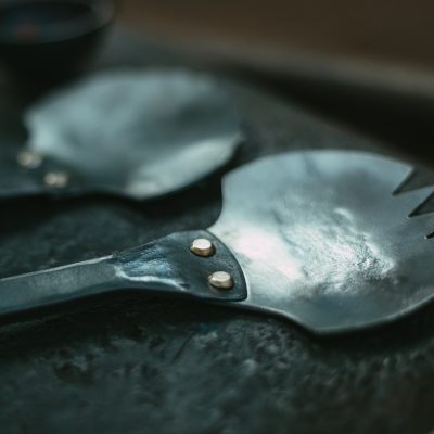 Hand forged with time and care to really make a table server that merges character with style. This piece fell together after a few head scratching sessions led to realisation that salad servers can be a centrepiece of a table stetting.