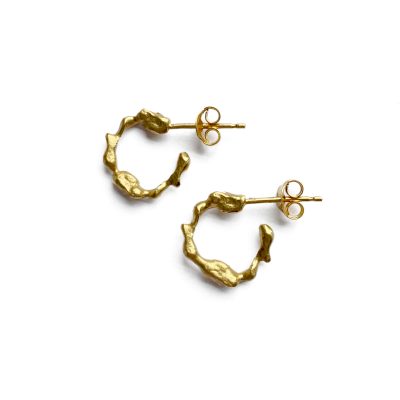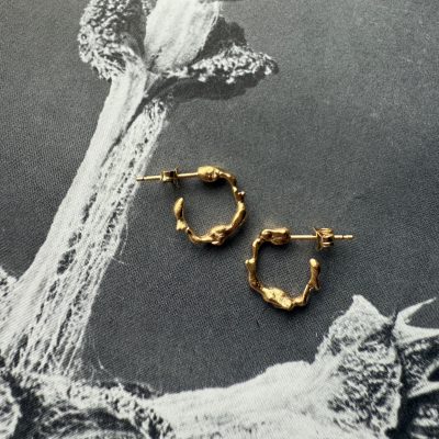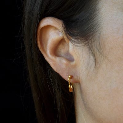 Small hoop earrings with a beautifully unique, sculptural silhouette. The perfect artistic and contemporary revamp of the classic gold hoop earring.